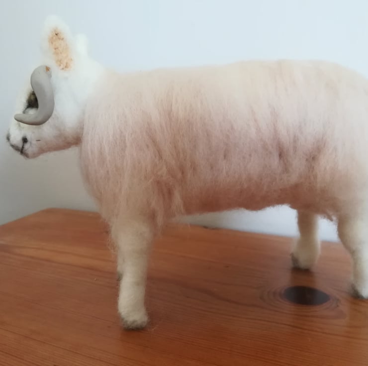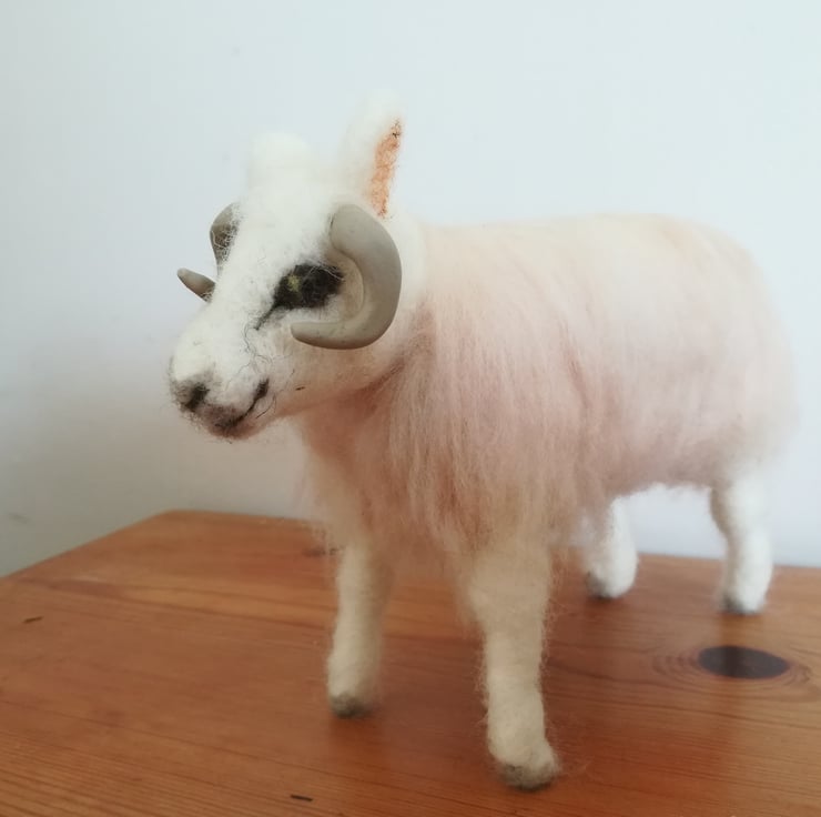 All wool needle felted onto a wire armature so can adopt a variety of different poses handmade OOAK approx 5ins high, to join my collection of sheep breeds. This is not a toy and is unsuitable for young children