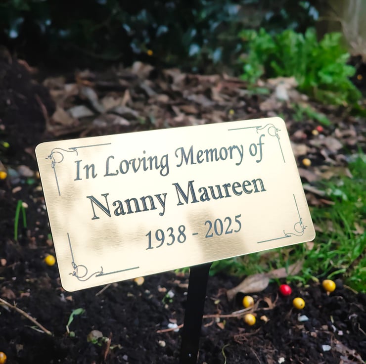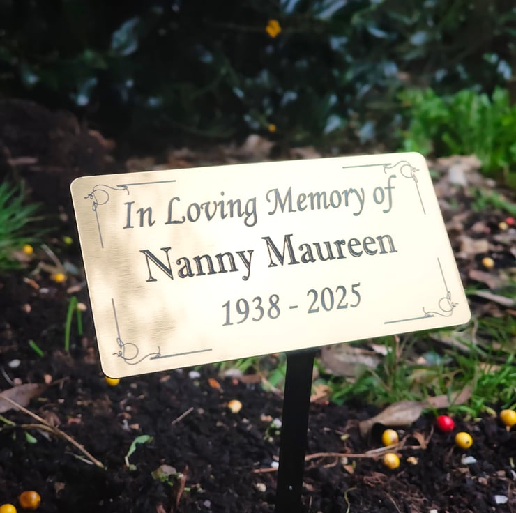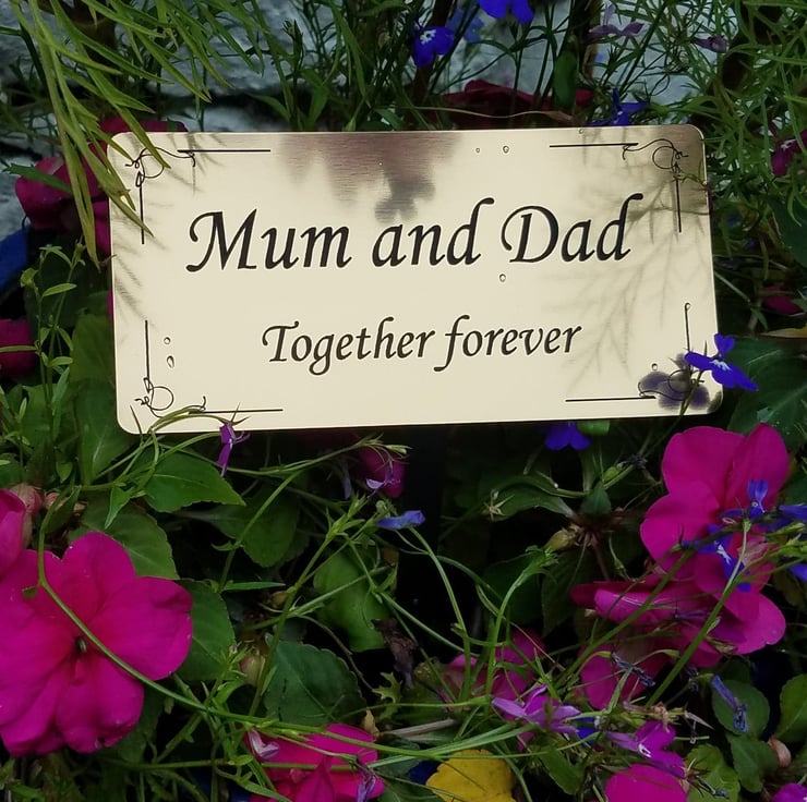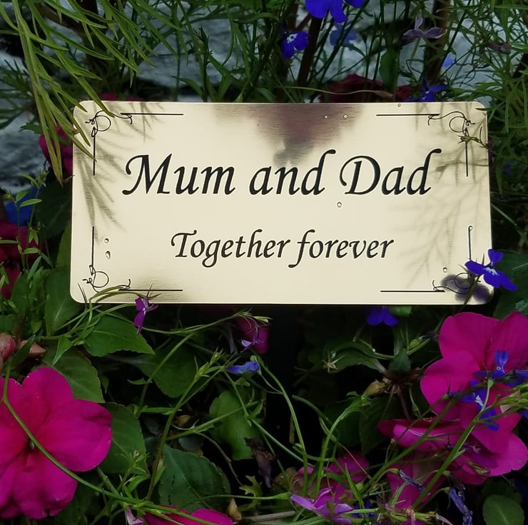 The markers can be completely personalised with any wording onto Brass Effect or silver effect Outdoor grade engravers acrylic, making them last indefinately.