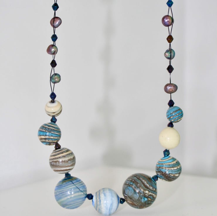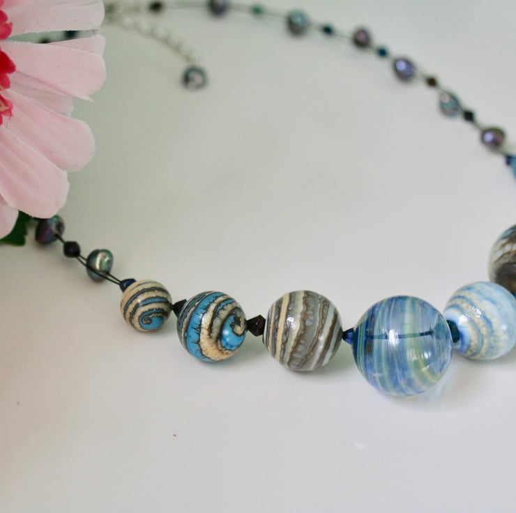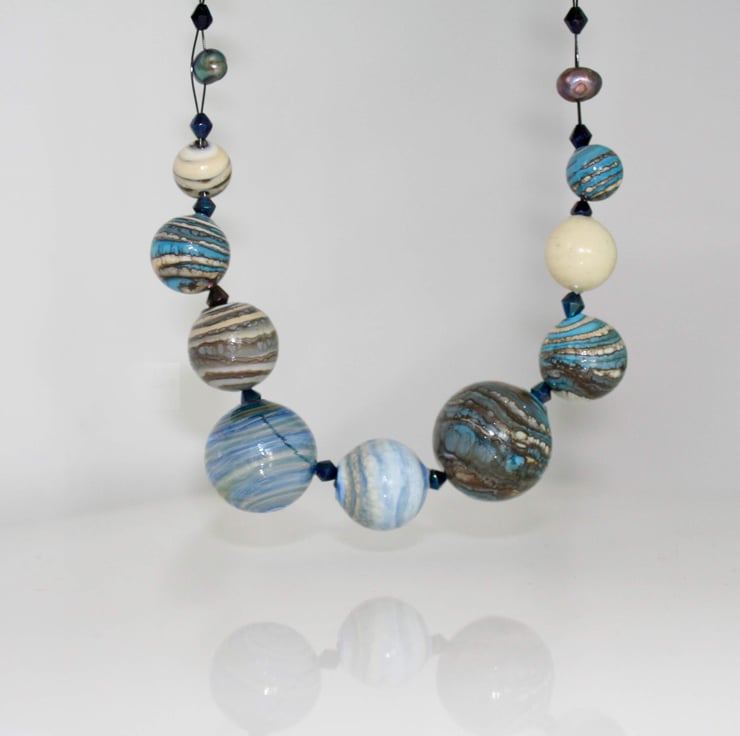 I was totally captivated by these blown glass beads when I first saw them as they looked as if miniature galaxies had been captured within the glass spheres. You can almost see the swirling eddies of dust and stars moving inside!