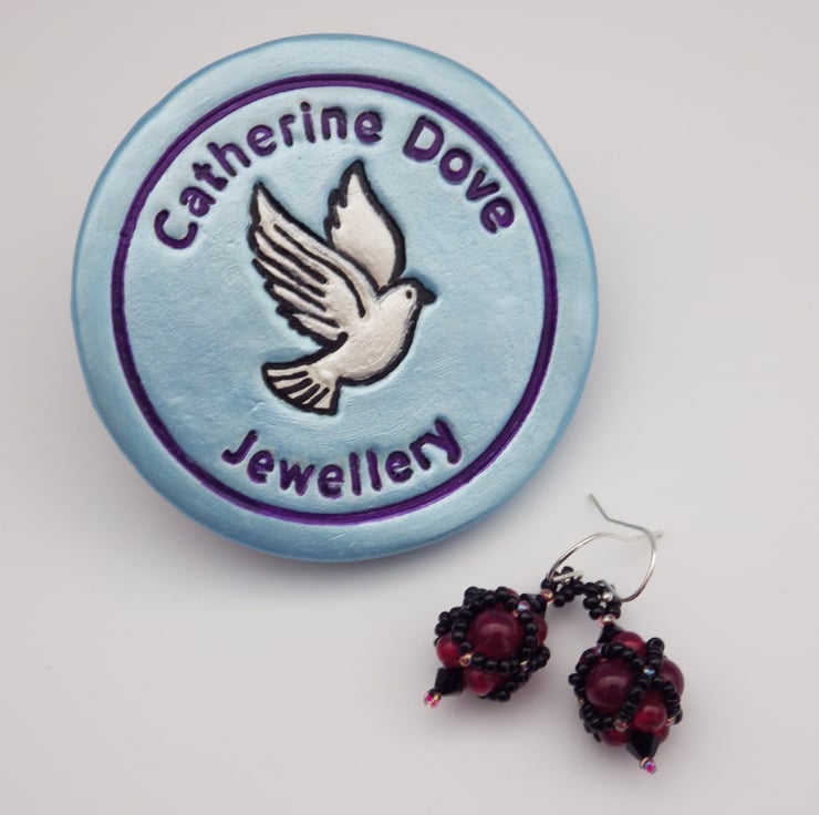 I came up with these earrings when thinking about how to incorporate semiprecious beads into my beadweaving. I love how they turned out! I’ve tried to use the seed beads to emphasise their globular shape and enhance each stone I’ve used. I love the gothic vibe this particular pair has- although people often tell me they remind them of blackberries!