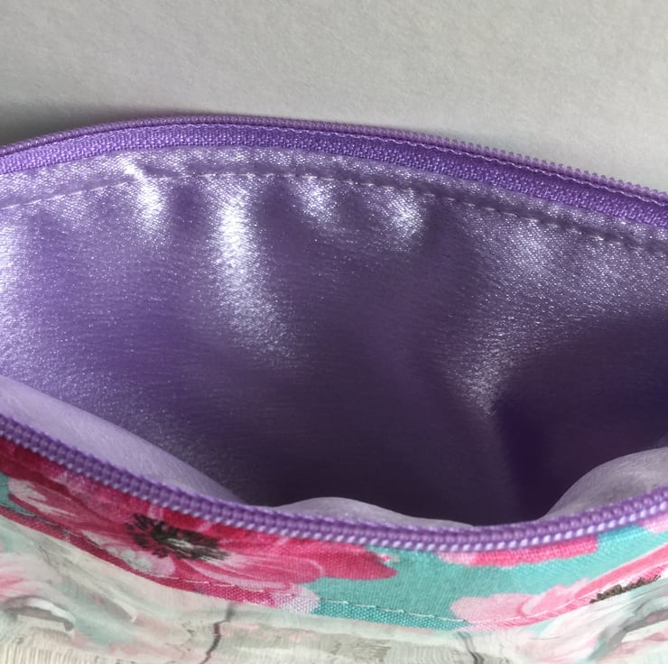 The back of the bag has been hand quilted around the flowers and a lavender coloured all purpose nylon zip matches the kimono of my model. A silky lavender fabric has been used for the lining.