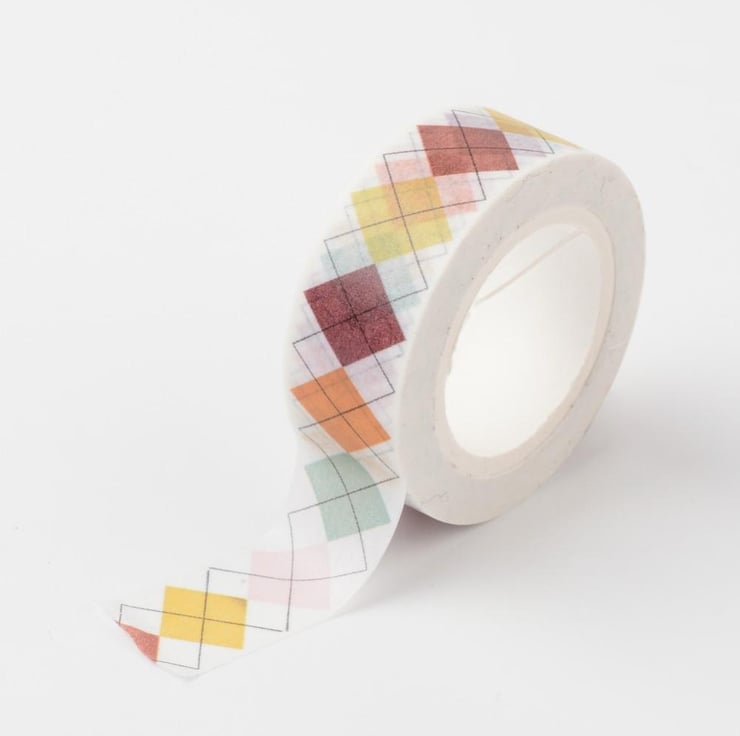 Inspired by the classic scottish pringle style, this filled and empty diamond shape patterned washi tape, in orange, brown, yellow and green.