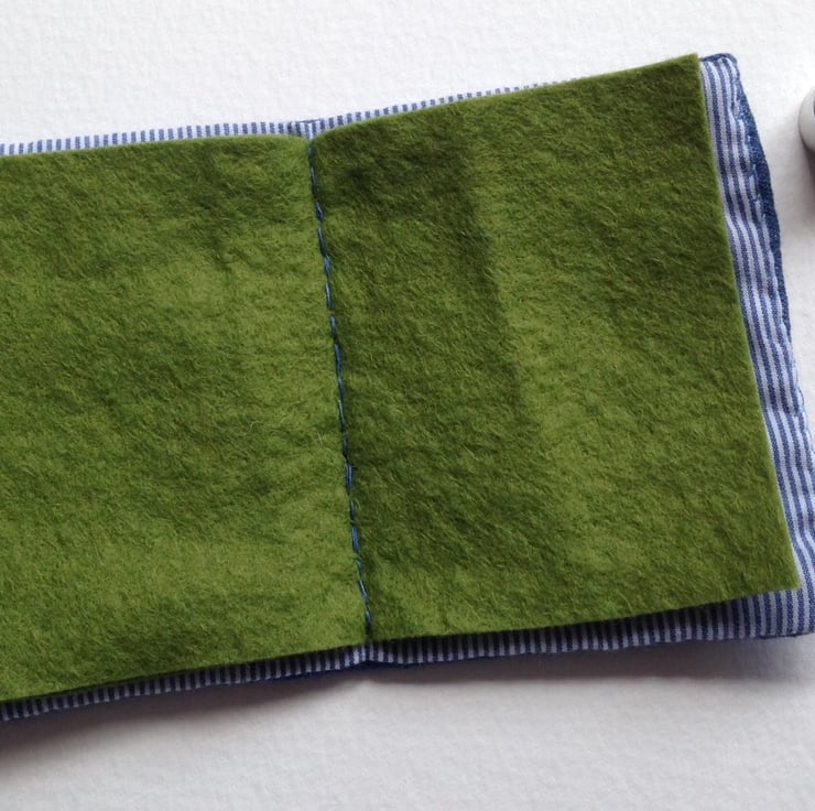I enjoy making small hand sewn items and thought denim would make an interesting fabric for a needle case .