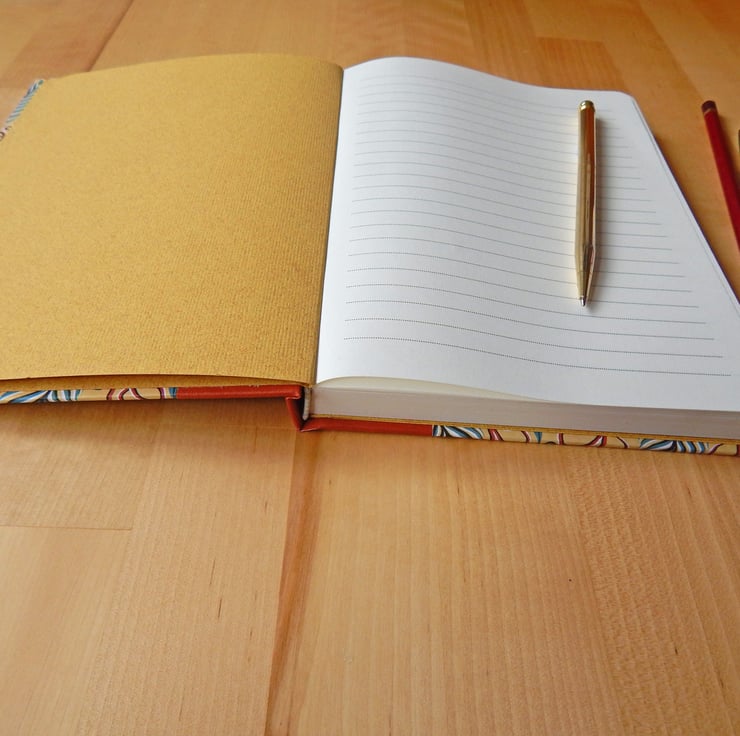 You could enhance your journal with a printed label, with the text of your choice. You can order a simple printed label, or a more elaborate custom label from the "Labels, Tassels etc" section of my LizzieMade shop: