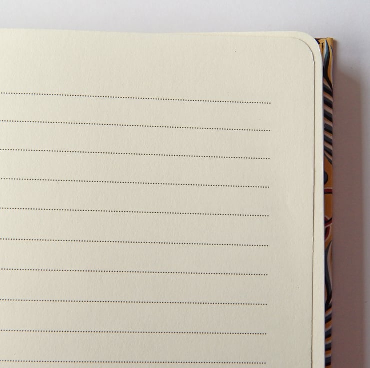 The book has 90 pages (180 sides) of high quality, smooth creamy-white text paper, printed with dotted lines in dark grey. The paper is suitable for pen, pencil and other dry media (though dense marker ink would probably bleed through).
