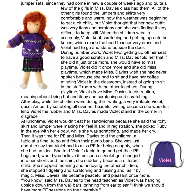 There are other children in Maisy’s class at school - Violet, Billy with his pet rabbit, Amber, Tilly, Rosie and her kittens, Amelia, Ruby, Marigold, Bobby with Max the dog, and the twins Oliver and Olivia, who have a puppy called Oscar. The dolls are all 26cm tall and baby Daisy is 16cm. Maisy and Mo love nothing more than having adventures with their friends. You can read about their adventures on my Facebook and Instagram pages - Maisy Muffin Rag Dolls and on my Mulberry Green Pinterest boards.