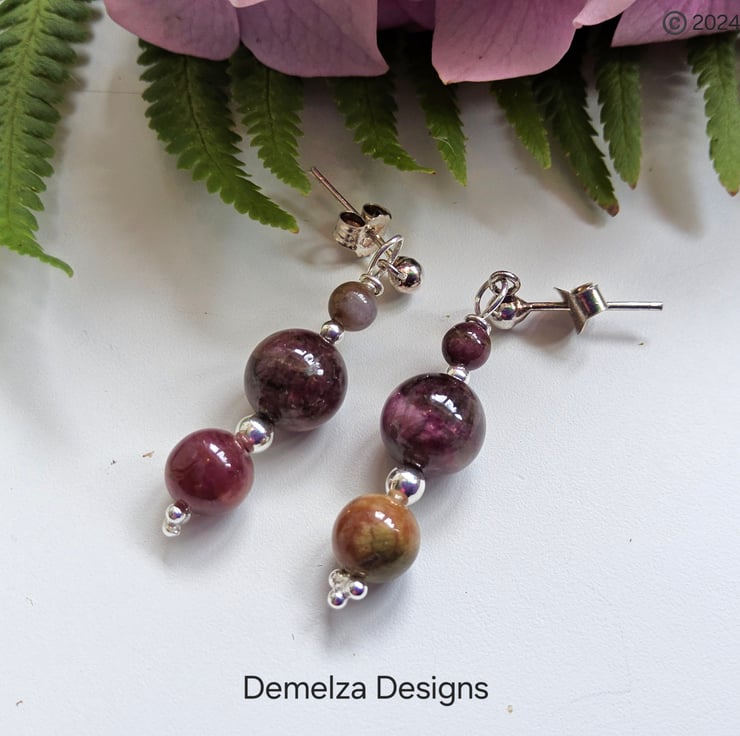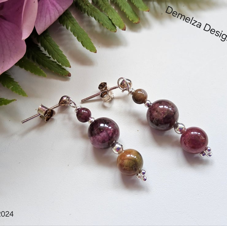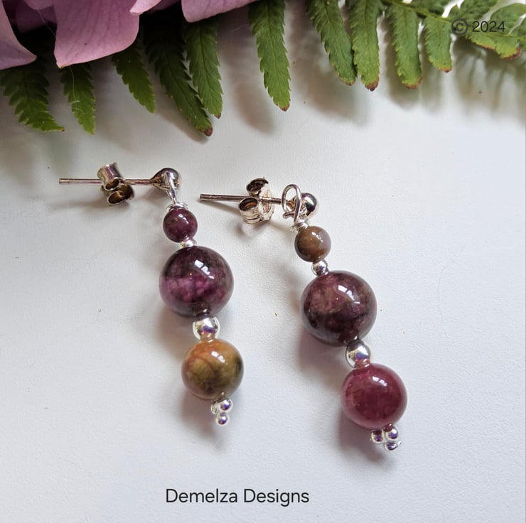A lovely pair of earrings designed and hand crafted using a mix of round cut genuine tourmaline gemstones. All components used are 925 sterling silver.