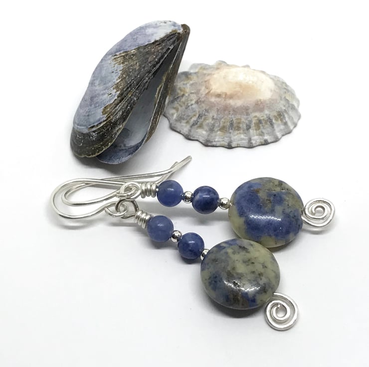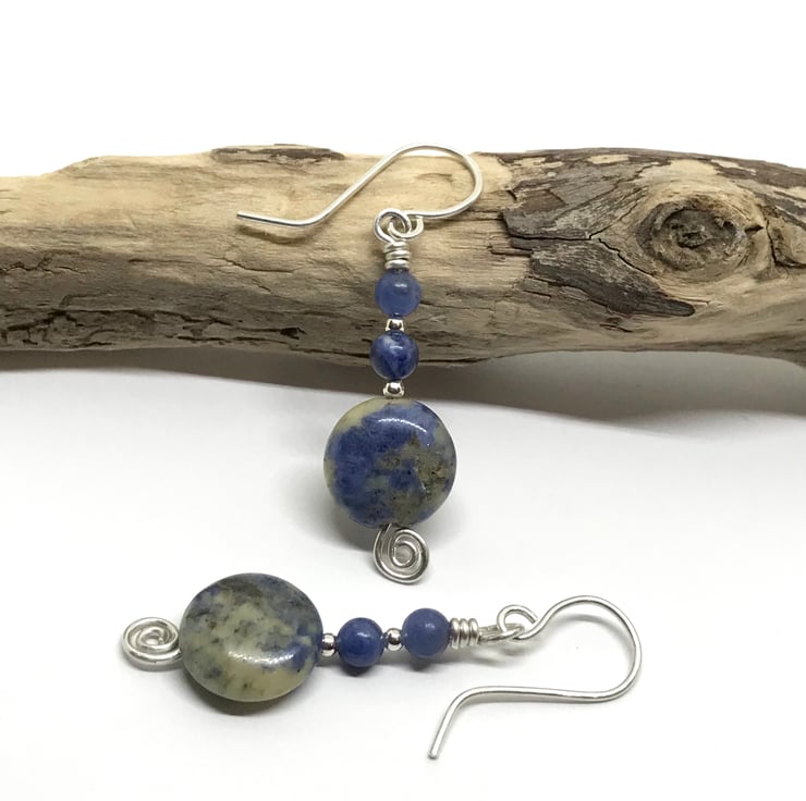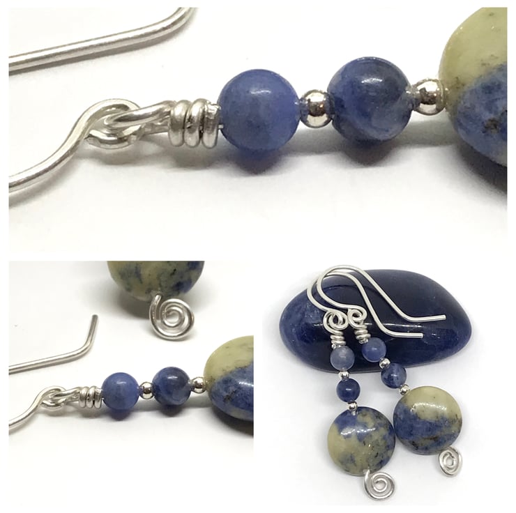 Beautiful blue and cream sodalite earrings handmade in sterling silver.