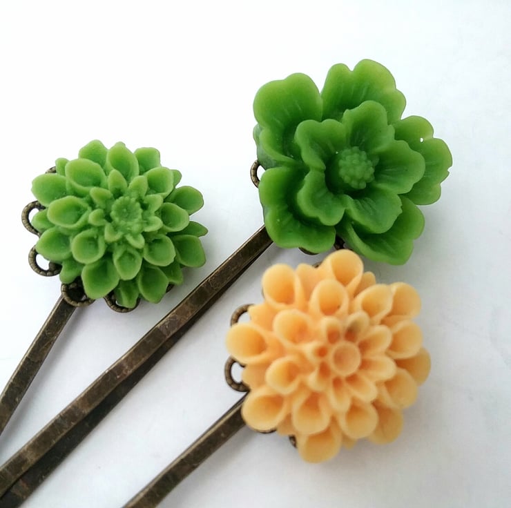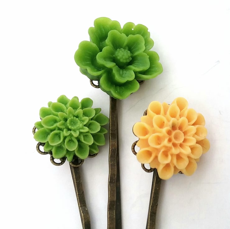 Pretty set of Green & yellow vintage flowers filigree Bobby Pins.....