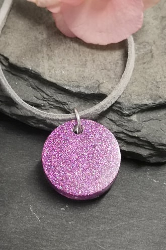 The width of the sparkling resin pendant is 20mm diameter with a depth of 5mm