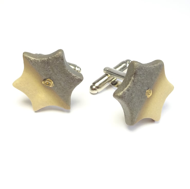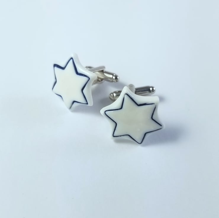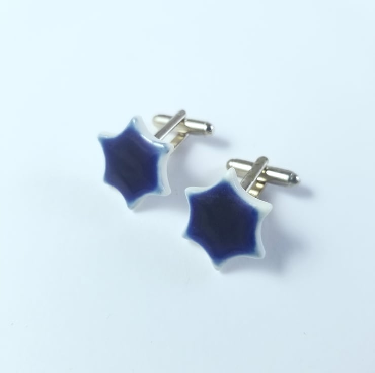These porcelain cuff links are handmade and each star has a glaze or lustre dot which catches the light and shines like a true star