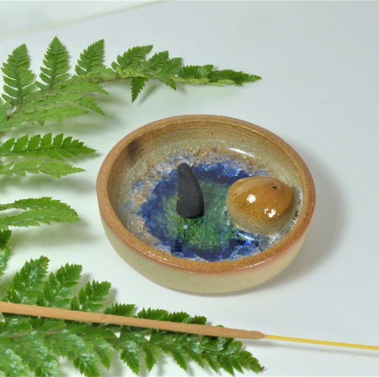 As the incense burns, whether an incense stick or cone the ash will be collected neatly. It can then be easily rinsed off and the dish remains lovely.