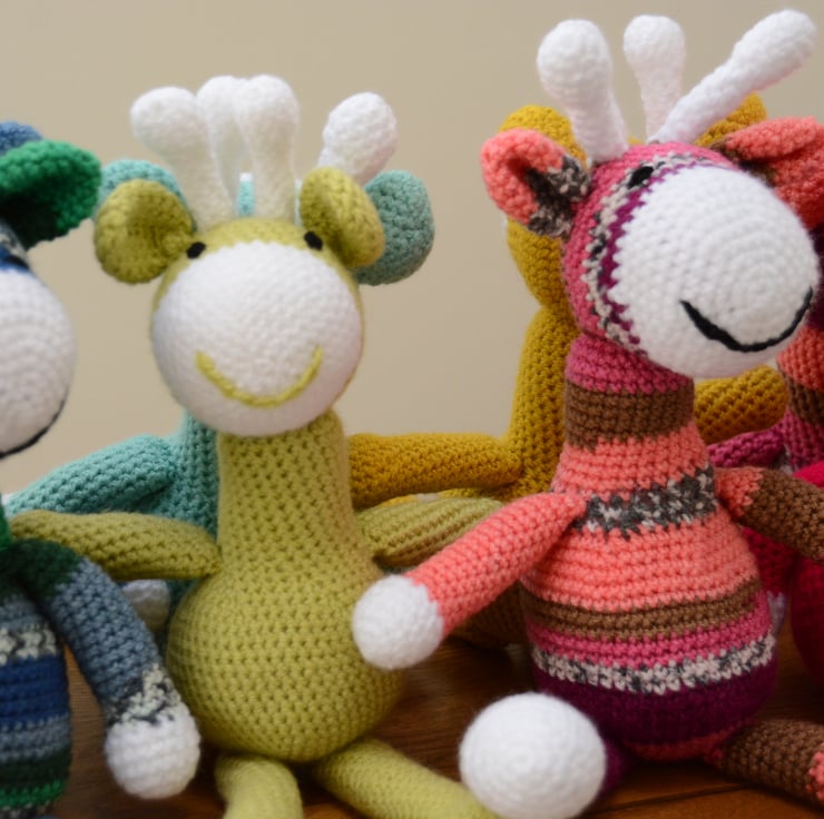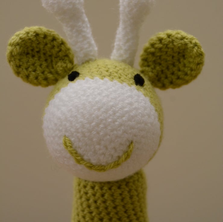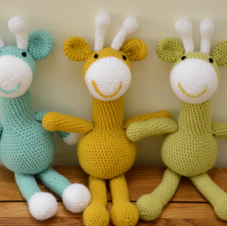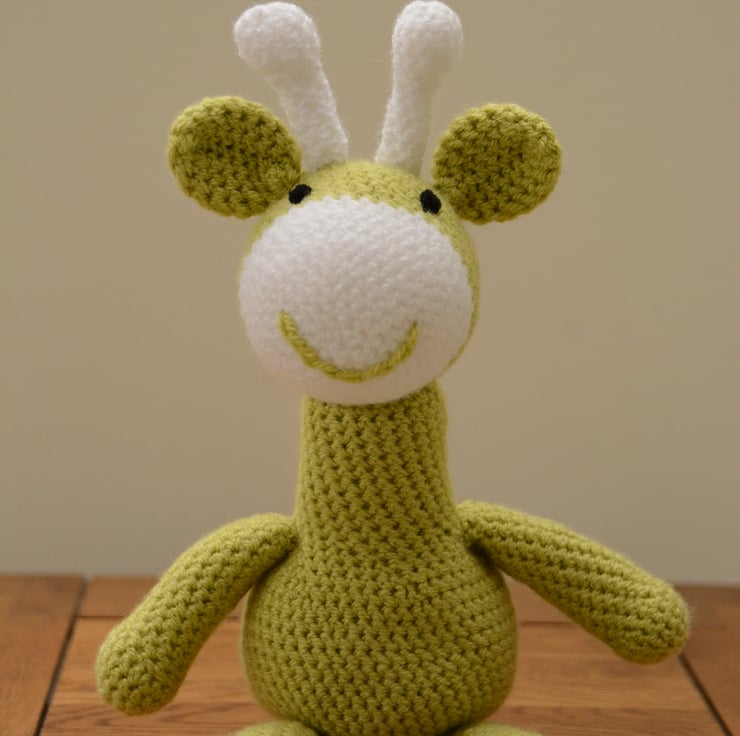 Hand crocheted Giraffe toy suitable from birth. Perfect baby shower gift. Made from acrylic yarn and polyester stuffing. Can be washed at 30 degrees. Toys are UKCA marked.