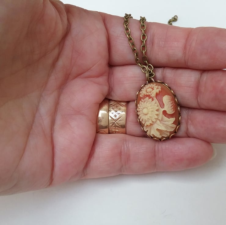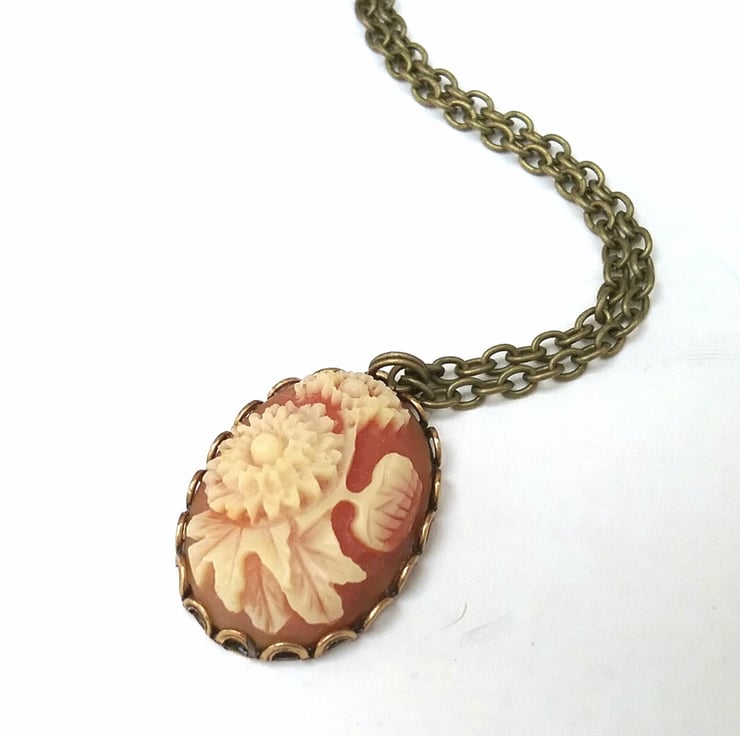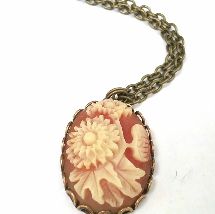 APretty vintage floral cabochon necklace set into brass settings.