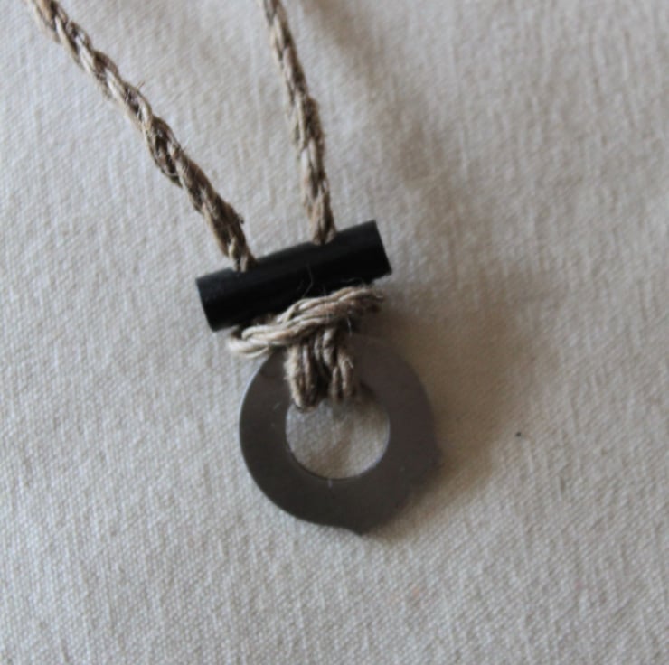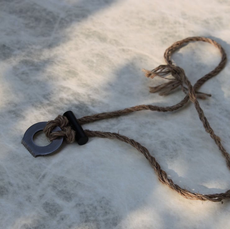 This necklace is produced using natural cordage made from 100% hemp! Hemp cordage is strong and natural appearing, plus it means this necklace is plastic free! So this tool is suitable for the natural places in which it may be used. Both hemp and nettle are much more low intenisty than cotton for example and are often gathered in the wild. A great ethical gift for someone who spends time outdoors.