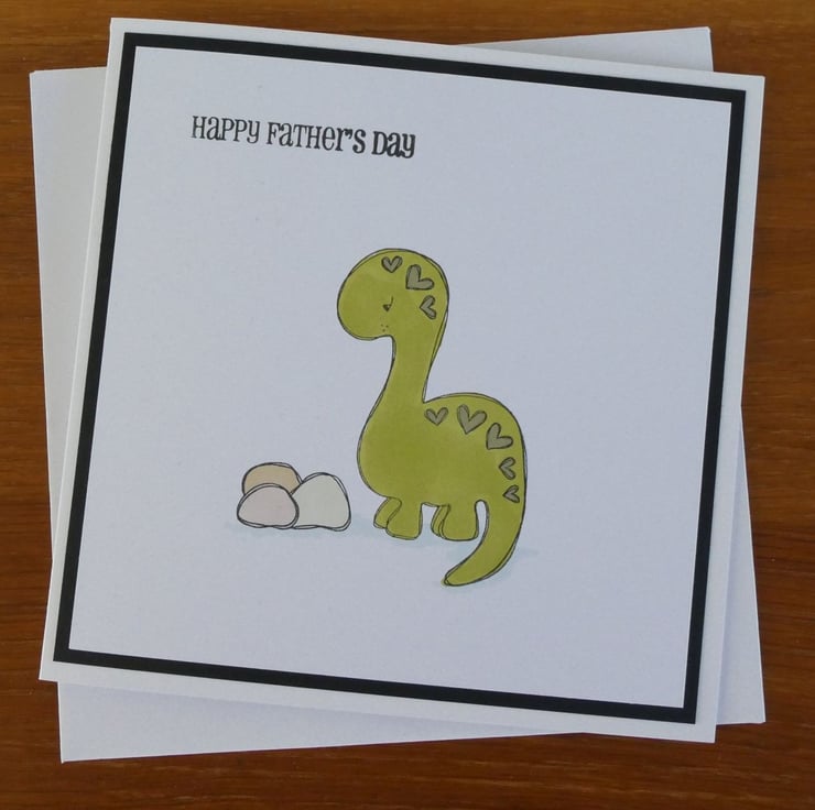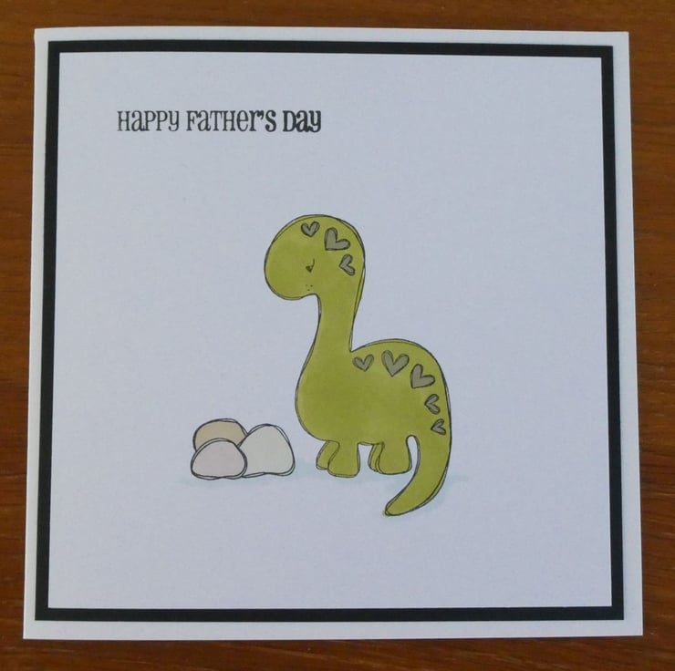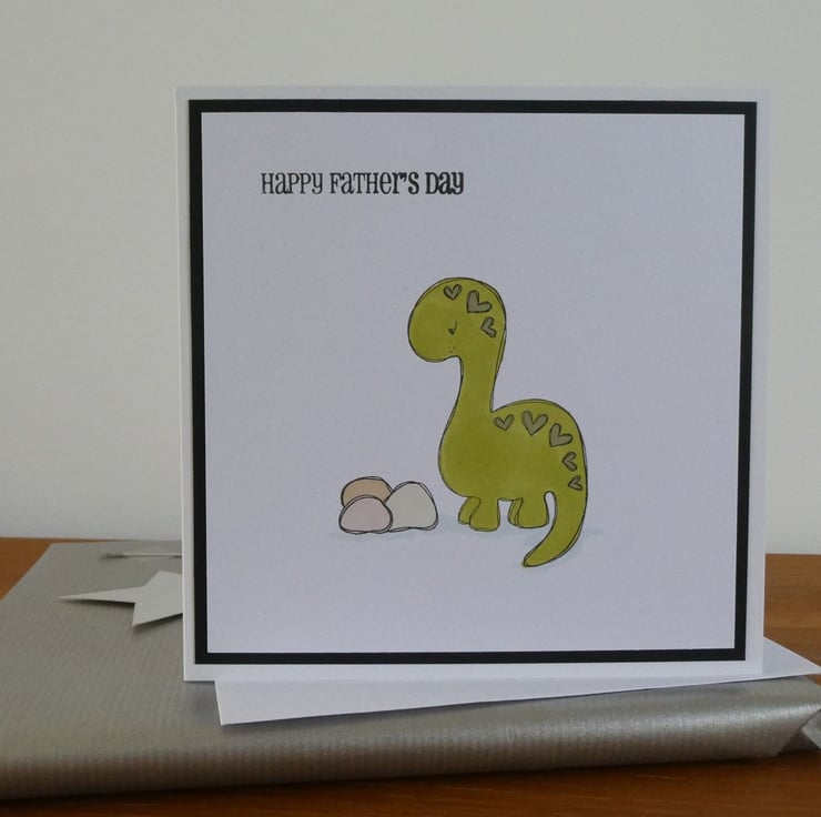 This Father's Day card is hand stamped with a cute dinosaur and the greeting Happy Father's Day.