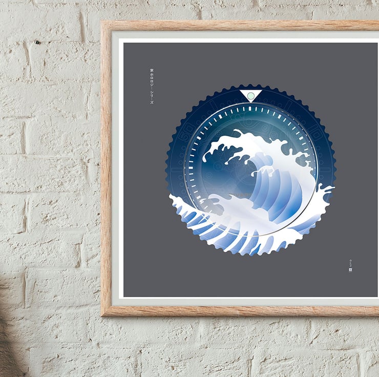 The uchi horology series is celebrating the Seiko SKX Diver's watch This second SKX watch art print references the iconic Seiko diver’s watch, the SKX series. The Seiko diver watch is popular among watch enthusiasts for its affordability, robustness and the ability to customize the watch relatively easily. This unique watch T shirt reflects this modification element of the SKX with a series of different variations of the watch face, bezel and hands. The horology art incorporates Seiko’s rich horology heritage, the 7s26 watch movement, SKX day date wheel, diver references and the famous Hokusai Great Wave featured on the back of the watch case.
