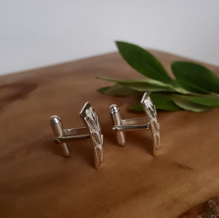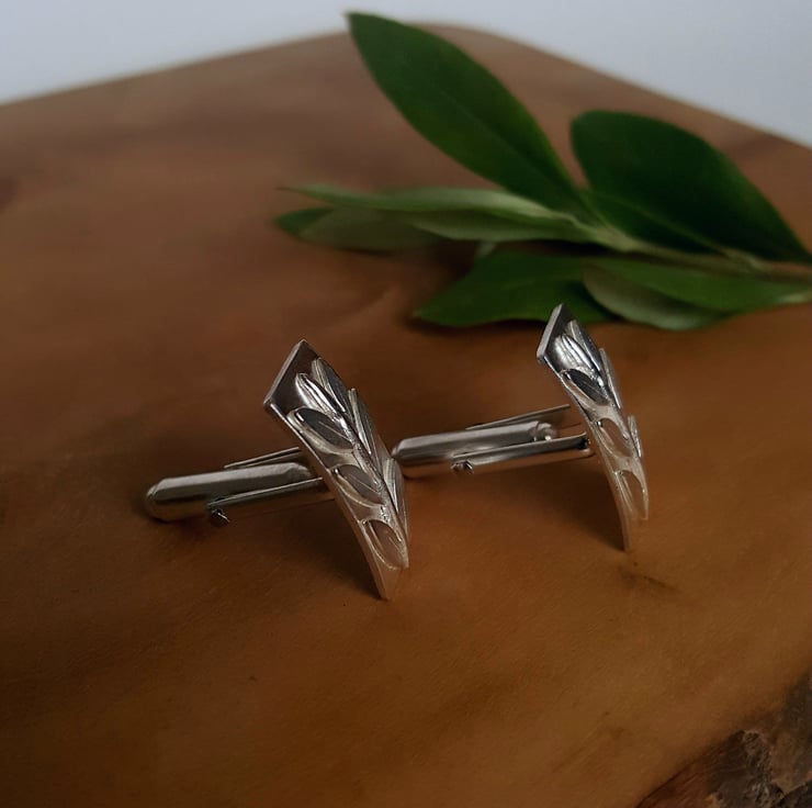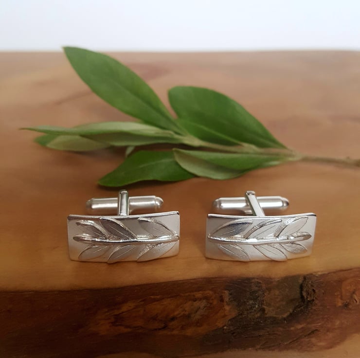 Olive Branch Cufflinks - Handmade in Sterling Silver.