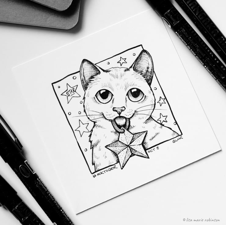During Inktober 2018 I added an extra challenge, to draw a cat in all 31 drawings. This is my kitty filled take on the word for day 8, Star.