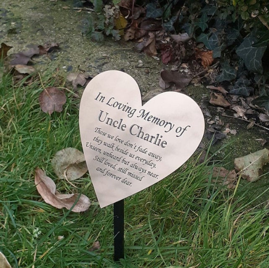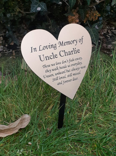 The markers can be completely personalised with any wording onto Brass Effect or silver effect Outdoor grade engravers acrylic, making them last indefinitely.