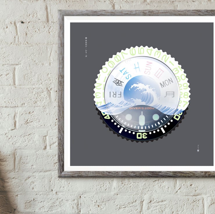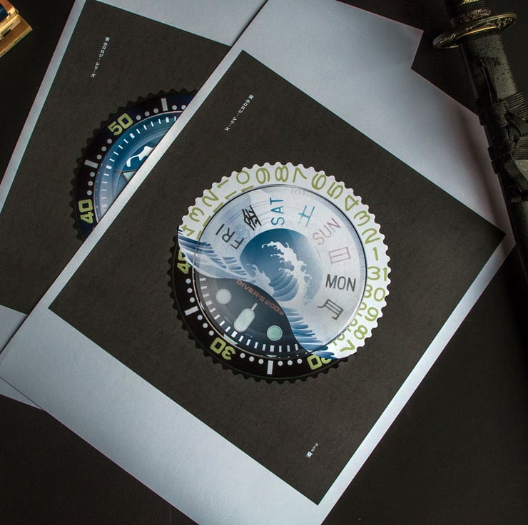 The SEIKO SKX Divers Watch "Mod D" for Seiko Diver watch fans. The Seiko SKX is popular amongst divers and watch enthusiasts for its affordability, robustness and the ability to customize relatively easily This Seiko SKX print series reflects this modification element of the watch with a series of different variations for the watch face, bezel and hands. The horology art incorporates Seiko’s rich horology heritage, the 7s26 watch movement, SKX day date wheel, diver references and the famous Hokusai Great Wave featured on the back of the watch case.