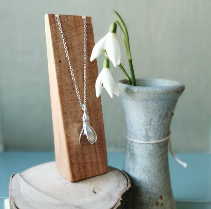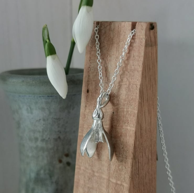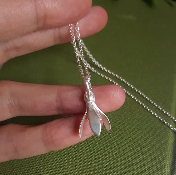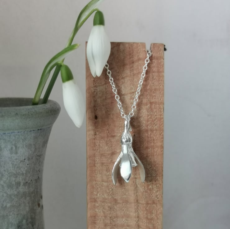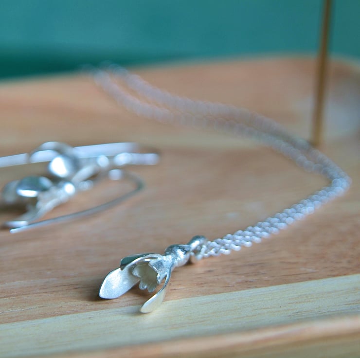 Silver Snowdrop Necklace - Handmade in Sterling Silver.