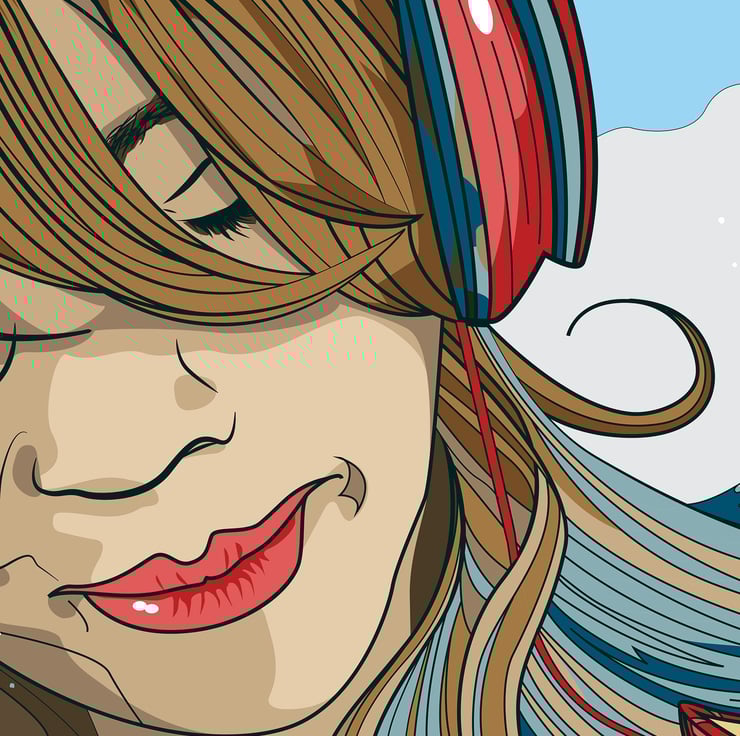 This uchi art print, entitled ‘Soundwave off Kanagawa‘ adds a new drama to the original with a redrawn Wave and a new boat and figures, not to mention the girl and her music.
