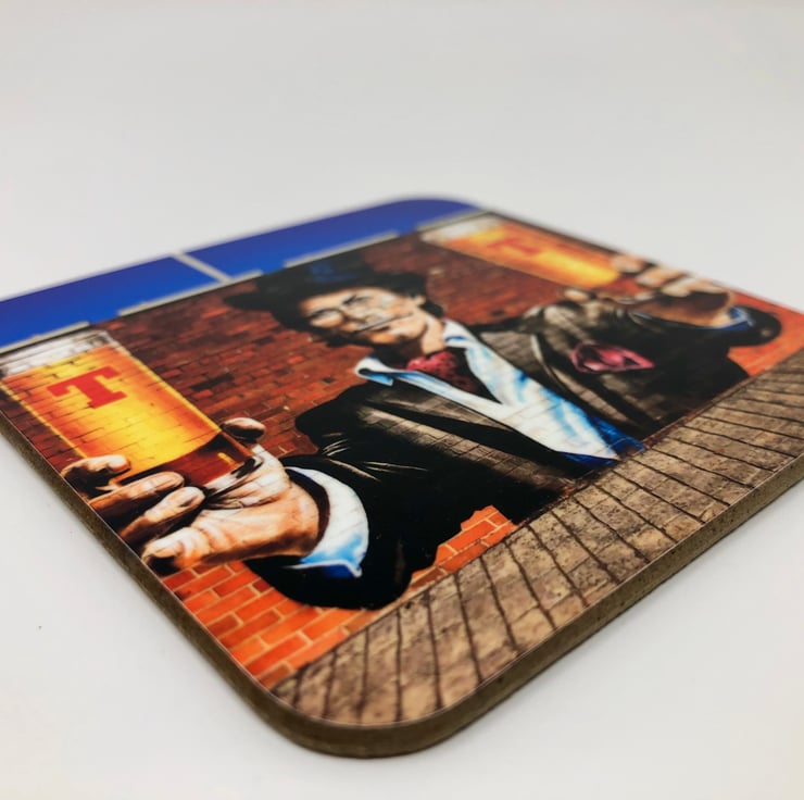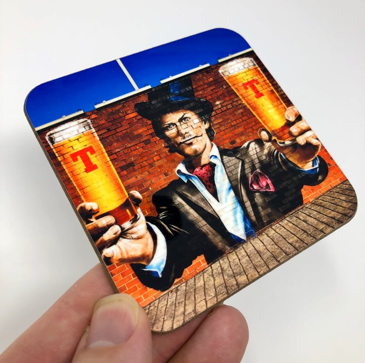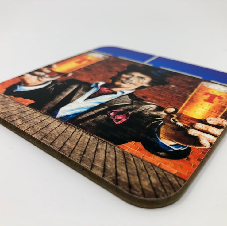 My Tennent’s pints guy’ photograph really pops on this lovely high gloss coaster