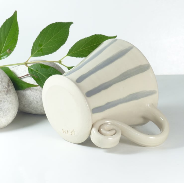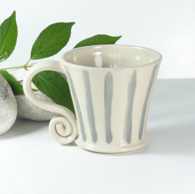 I threw this mug on the potter's wheel using a white stoneware clay. I then turned the base and added the handle before bisque firing the mug. I glazed it using a wonderful red brown.