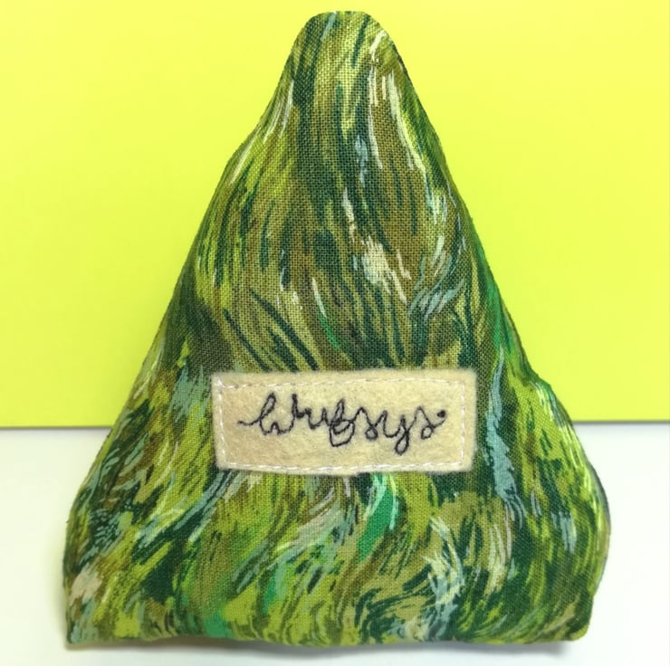 The hill is freestanding, stuffed and sewn and would look quant on any shelf or dresser.