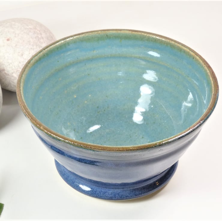 I threw this bowl on the potters wheel using a strong stoneware clay. I then turned the base to make a foot ring. It was then fired to a bisque before being glazed in three contrasting and complimentary glazes and refired to 1220C.