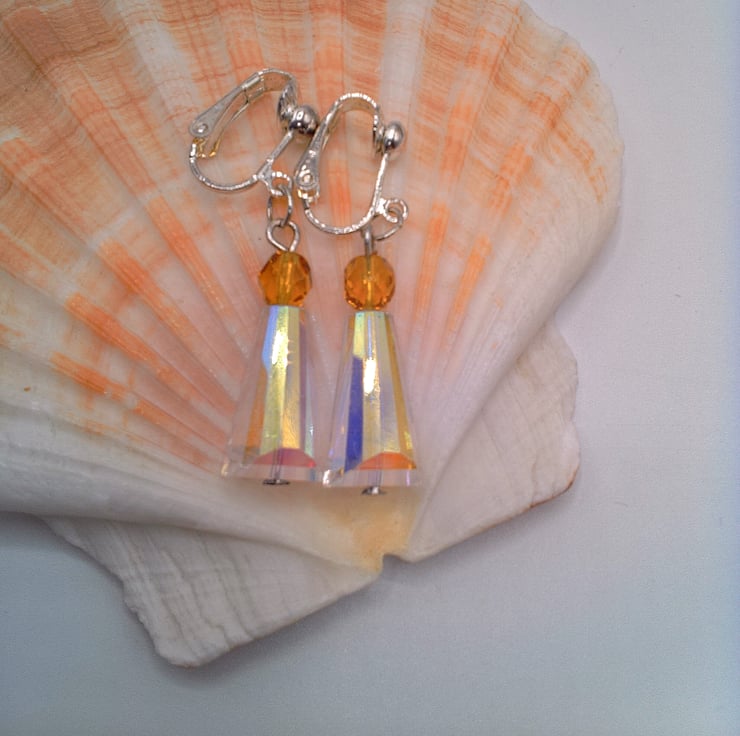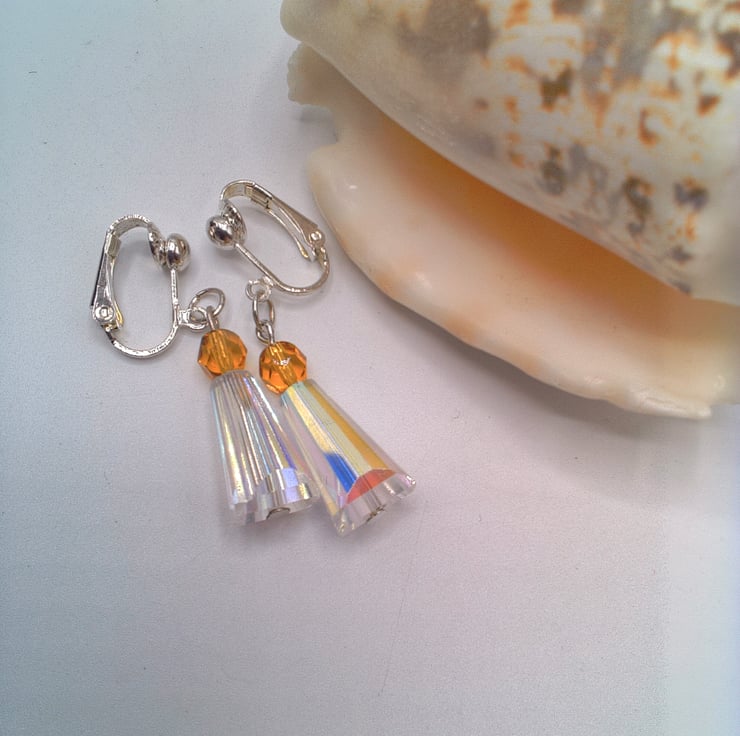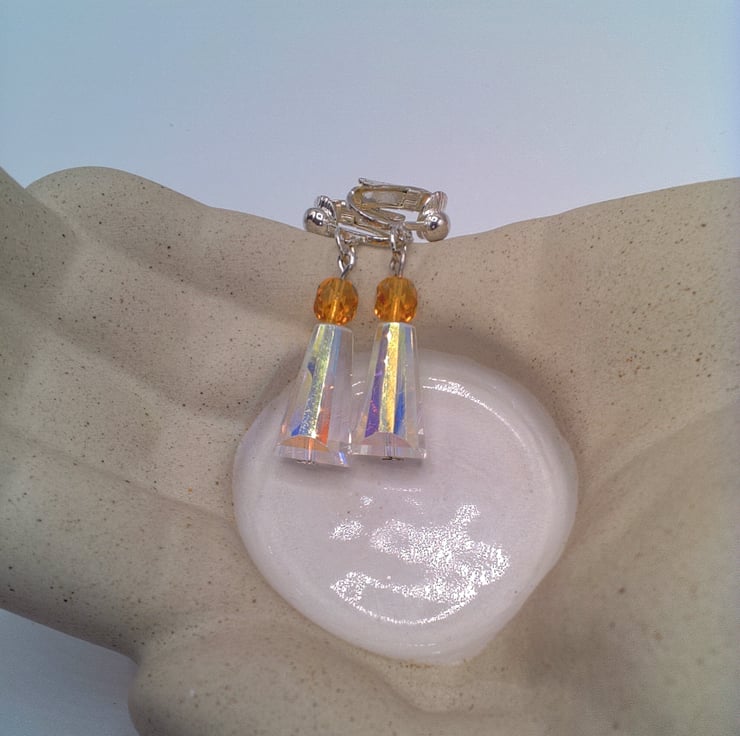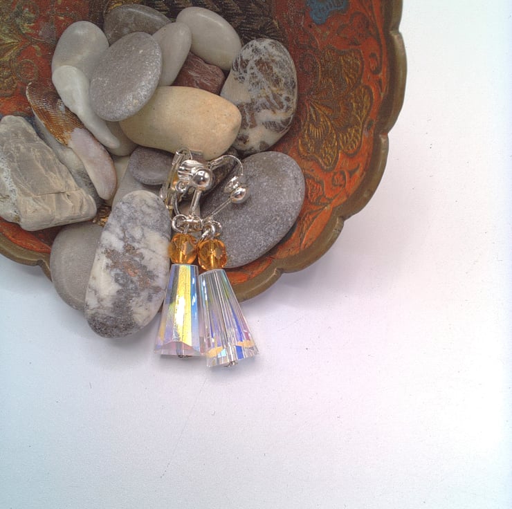 Clip On Earrings With Clear Artemis Beads And A Topaz Crystal, Gift for Her, Birthday Gift, Anniversary Gift, Clip On Earrings, Crystal Earrings
