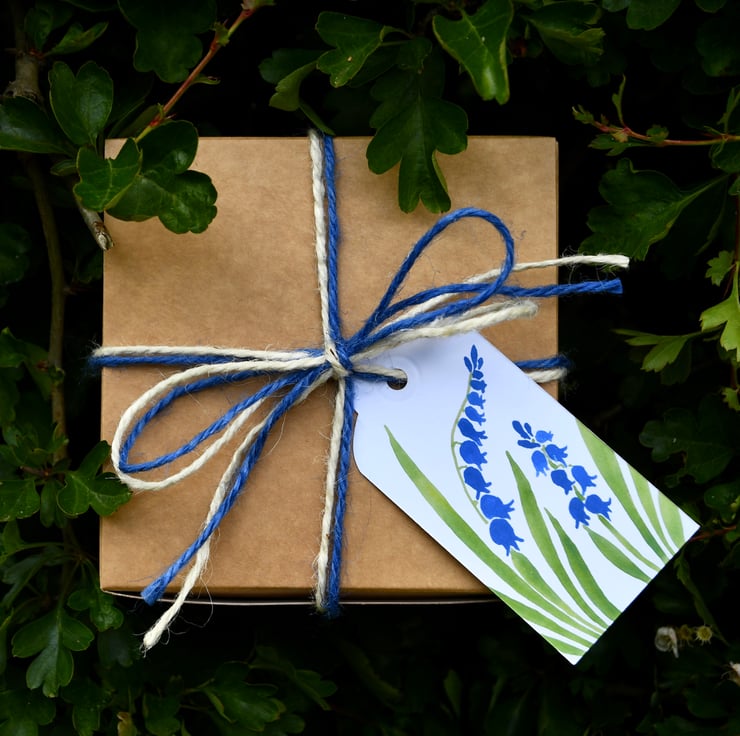 This will be beautifully packaged in a special brown cardboard box and tied up with coloured string. One of my personally designed gift tags will be attached on which you can write your own message or I can add a message for you.