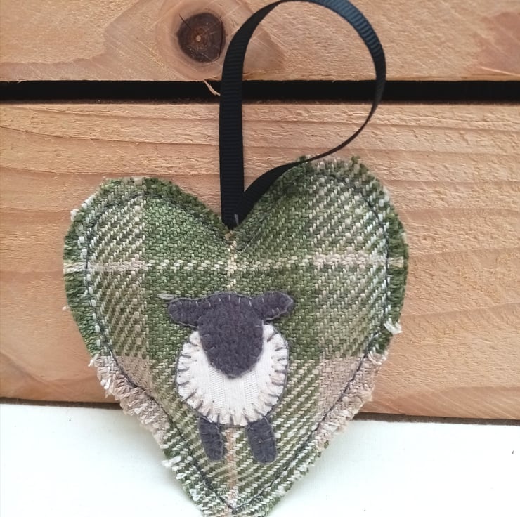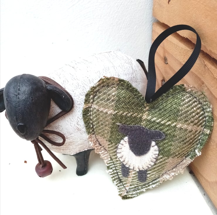Handmade from my stash of fabric scraps and featuring my sheep design, hang on a coat hanger in your wardrobe or hang on a handle for decoration.