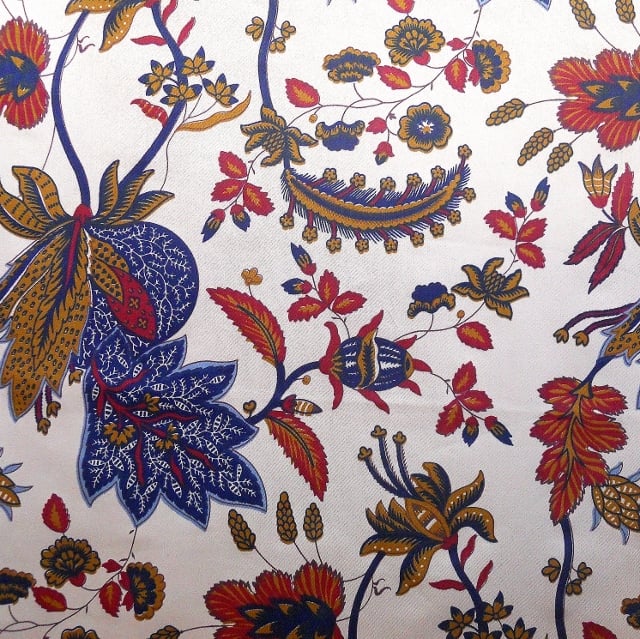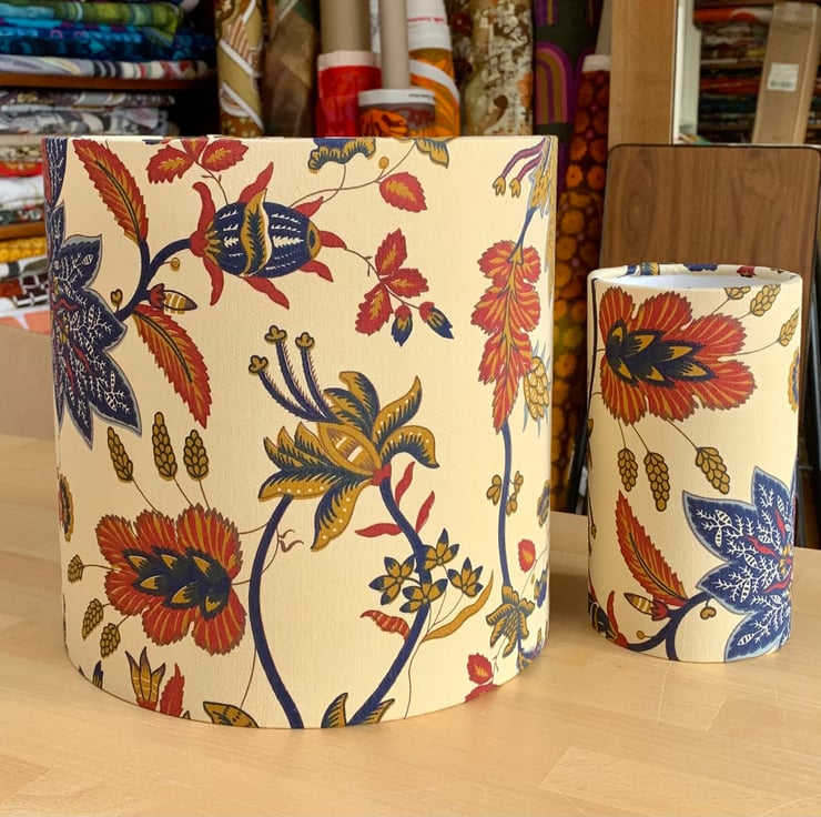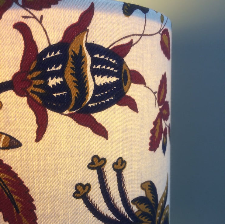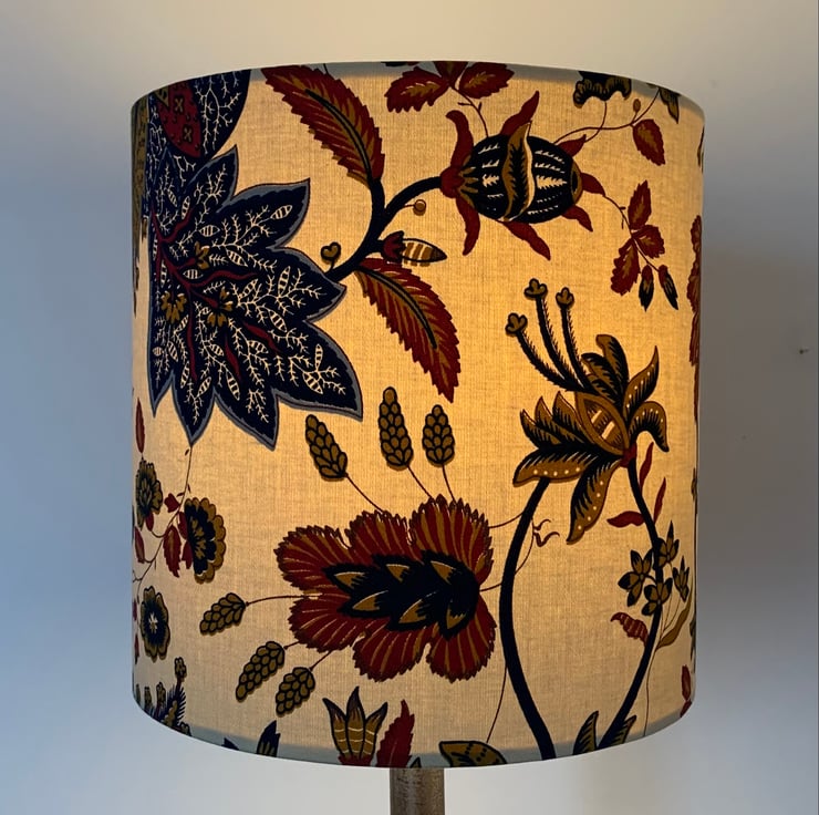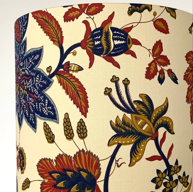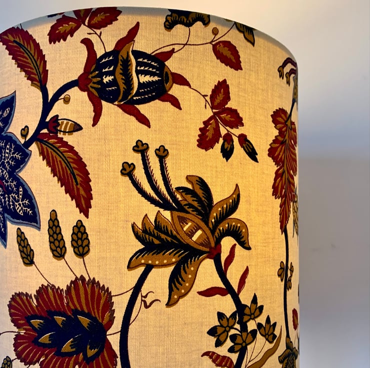 Dramatic Arts and Crafts Style Jacobian Style Navy and Red Laura Ashley 80s Vintage Fabric Lampshade option - a great feature in a modern or traditional style room. The background is a richer cream colour rather than the brighter white in my photo.
