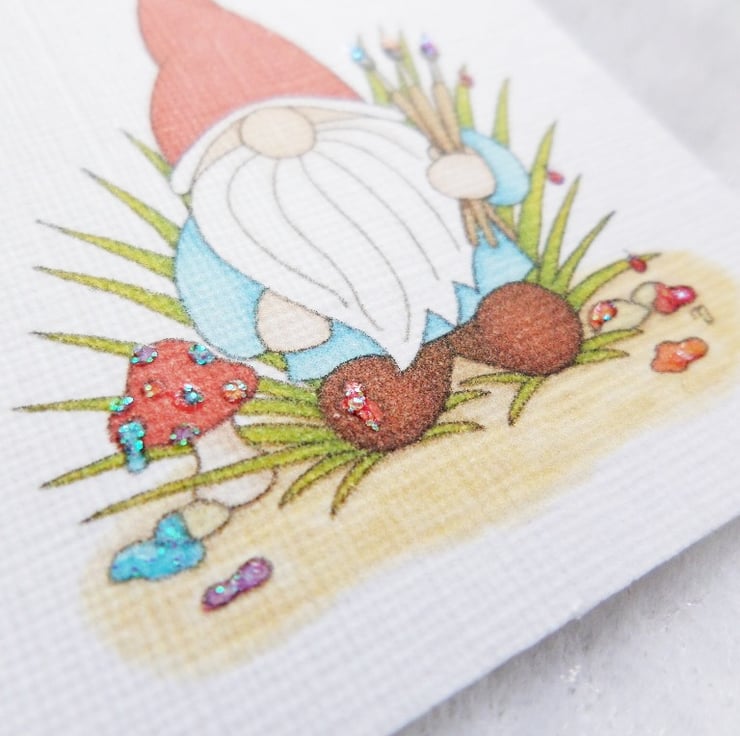 These fun ‘Norm’ the Garden Gnome gift tags have been designed using my own original watercolour illustration. I have designed them to match and compliment my handmade cards in the same design.
