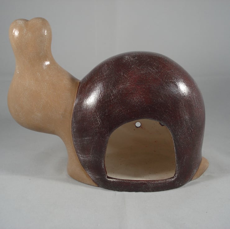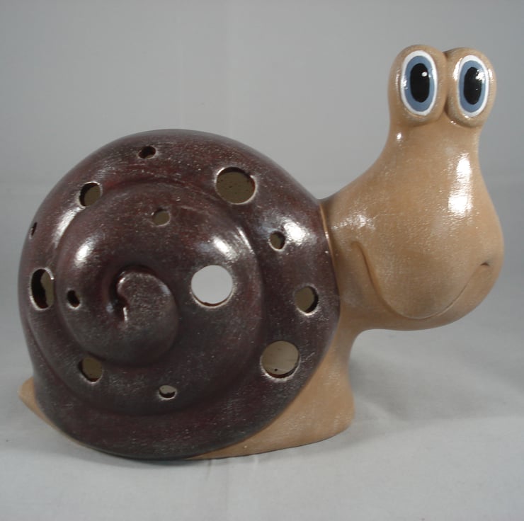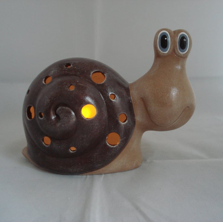 I have for sale a ceramic novelty animal tealight/candle holder, which was hand painted by myself. It is a cute garden snail figurine, which has many small holes in its shell, with a larger hole at the back, for a small candle/tealight to be placed inside. This would make a fun and novel addition to anyone's garden, patio or home, or perhaps given as a gift.