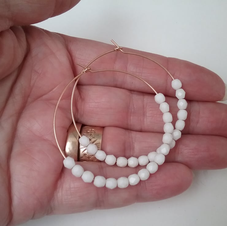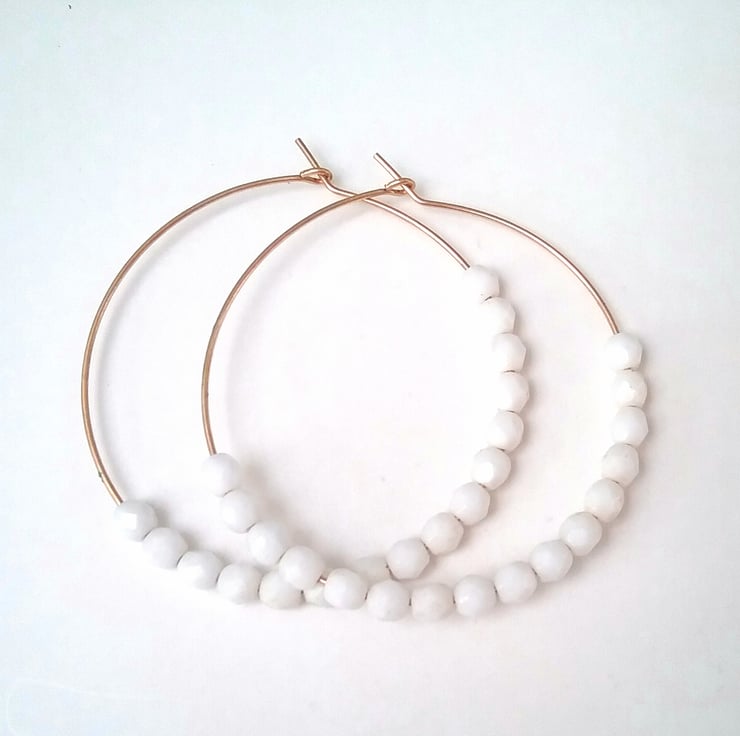 Large gold filled white Czech glass beaded hoops