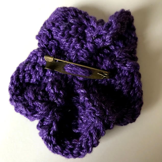 A simple yet pretty hand knitted flower brooch pin.