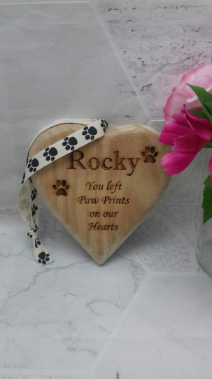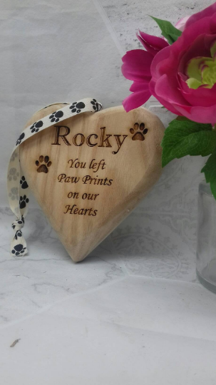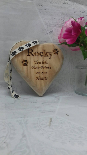 Wooden Heart pet memorial plaque