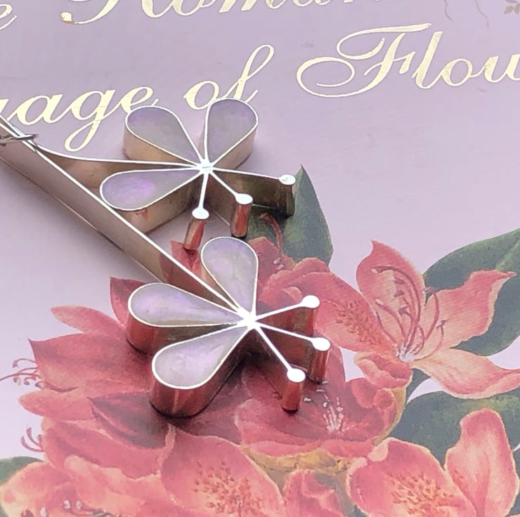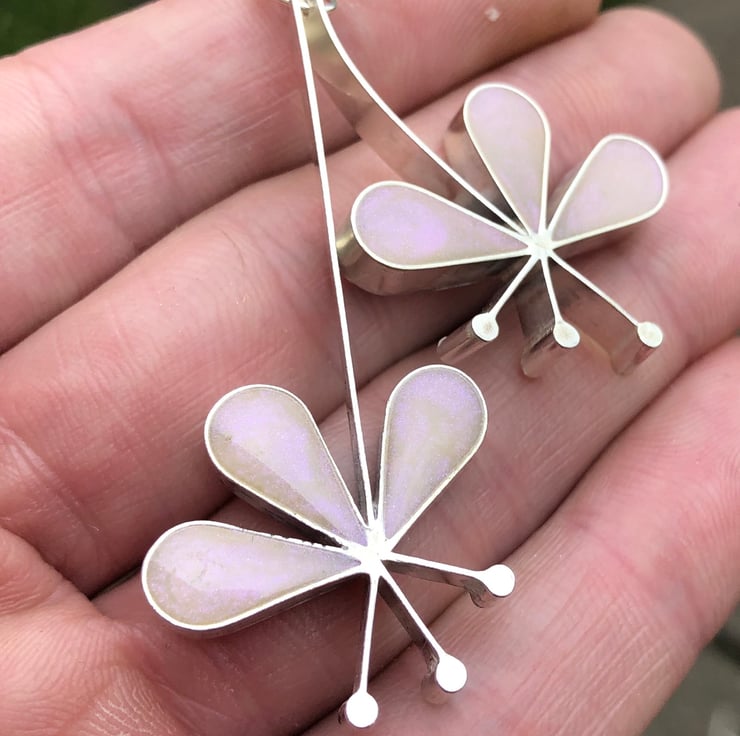 This Cherry blossom pendant is handmade in sterling silver and filled with iridescent pink resin.