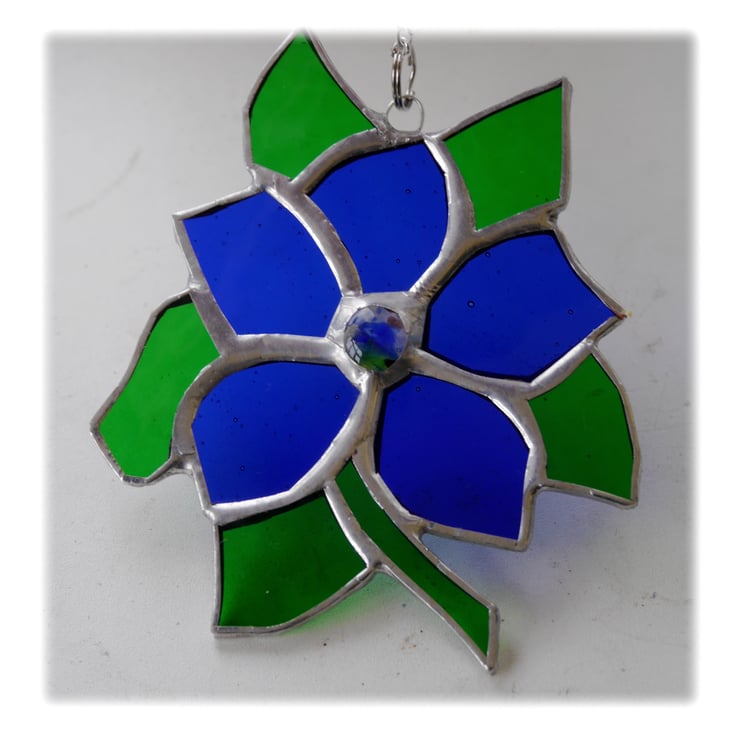This would make a beautiful present for anyone as it is in such a gorgeous shade of blue. This flower looks really lovely hanging in the window where it shines and catches the light all year round.
