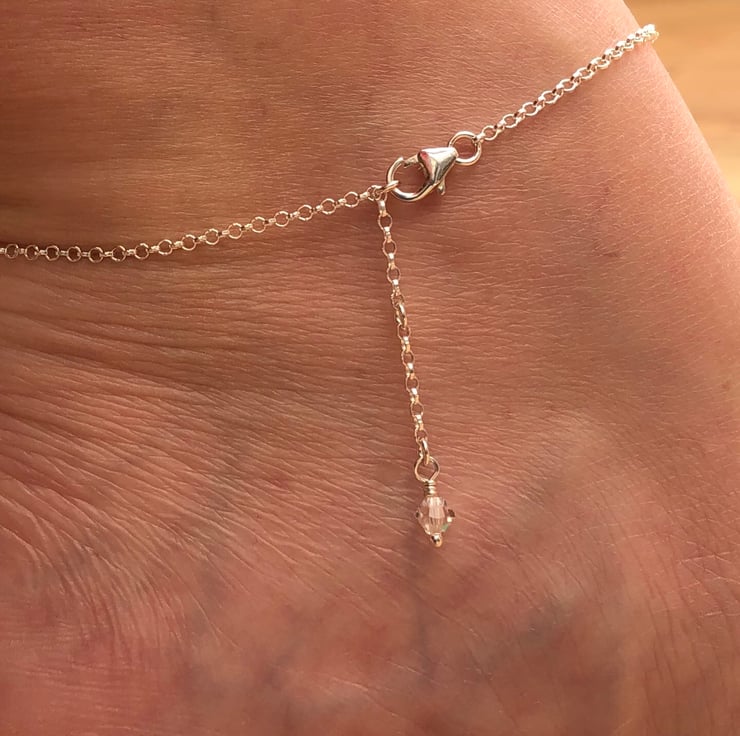 Choose from 9 inch with a 1 inch extension chain or 10 inch with a 1 inch extension chain. These are the most popular sizes, if you need another size please message me, this anklet is made to order so it’s not a problem, I’ll add the option for you.