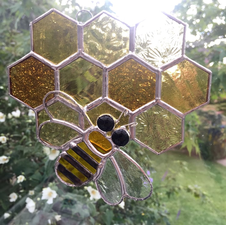 What better than to show your support by having your very own bee on honeycomb hanging in your window.