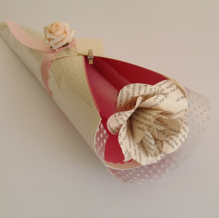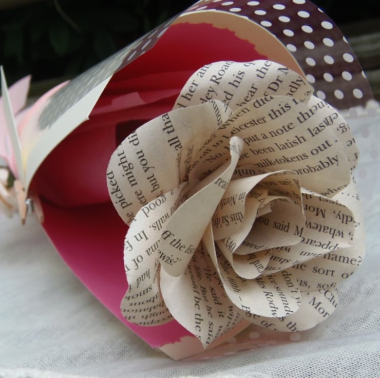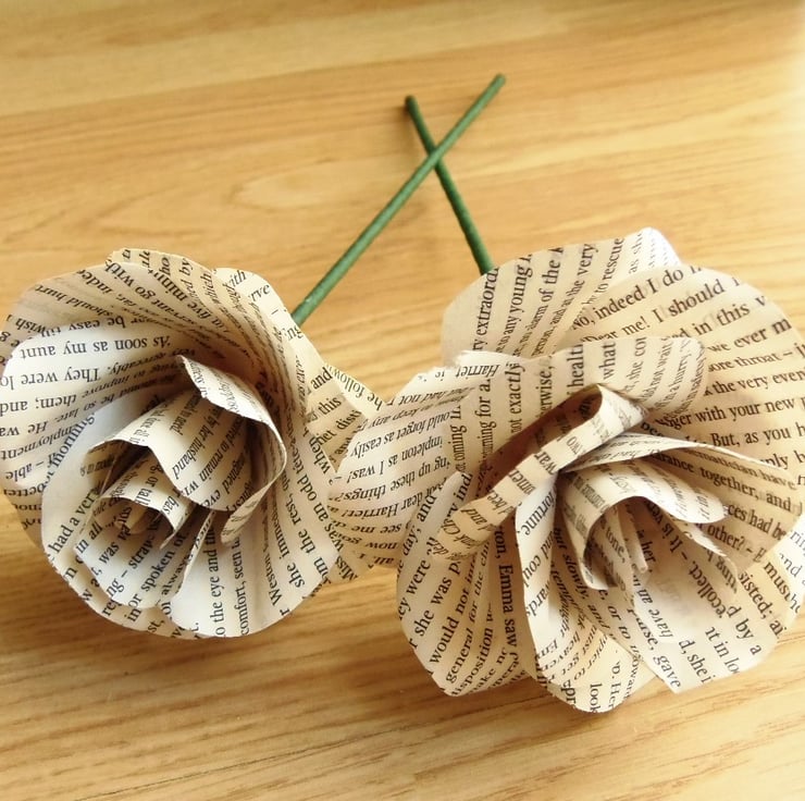 My book page roses are handcrafted using real book pages and you can order them gift wrapped or loose for your own flower arrangements or event props.