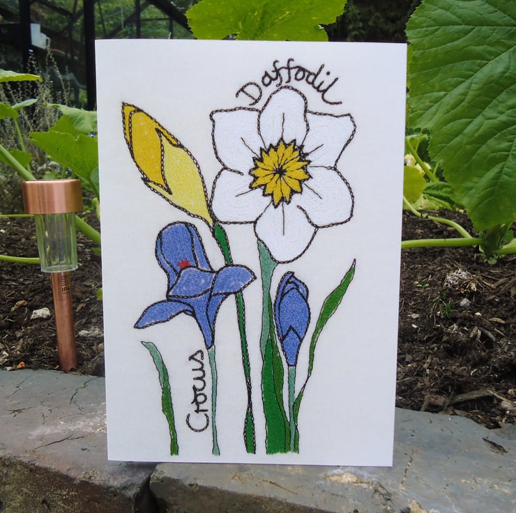 This floral image is a beautiful quality print of my original hand-stitched Daffodil & Crocus piece.