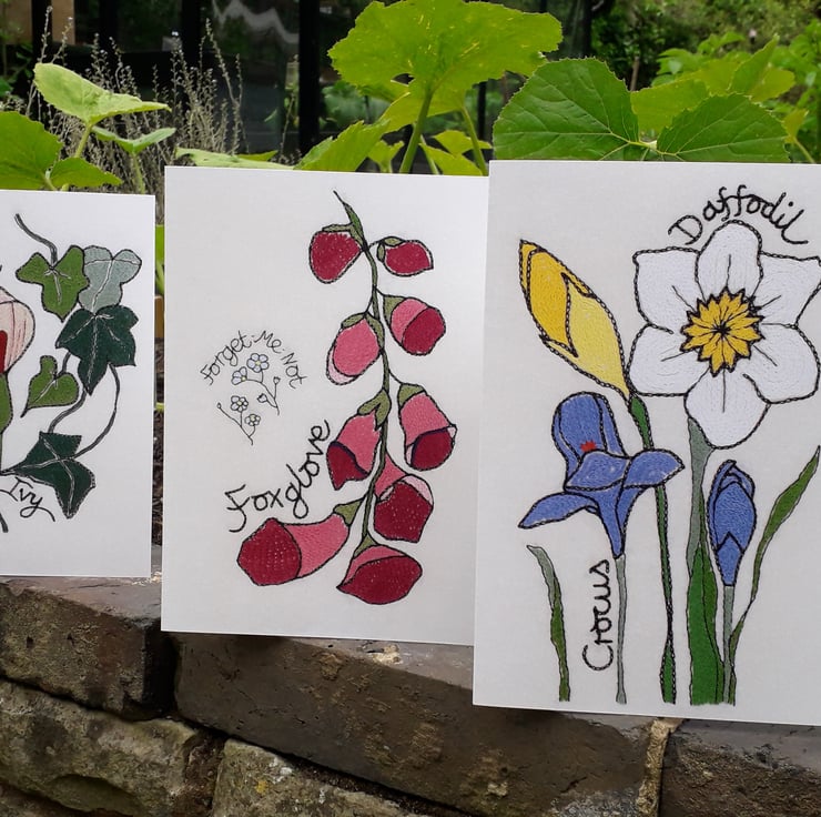I love to stitch images inspired by the nature around me. Each of my floral pieces is a hand-stitched, time consuming labour of love; a card version is the perfect way to share a bit of floral happiness, whatever the occasion!