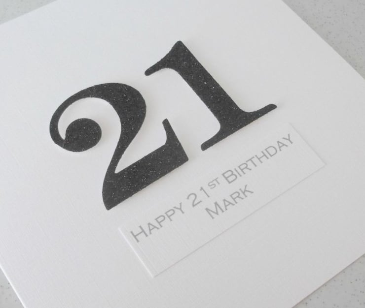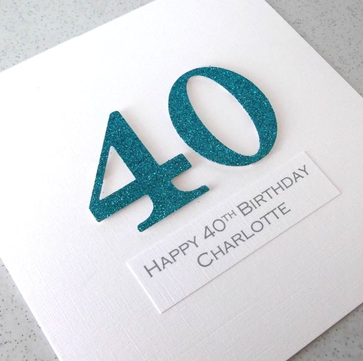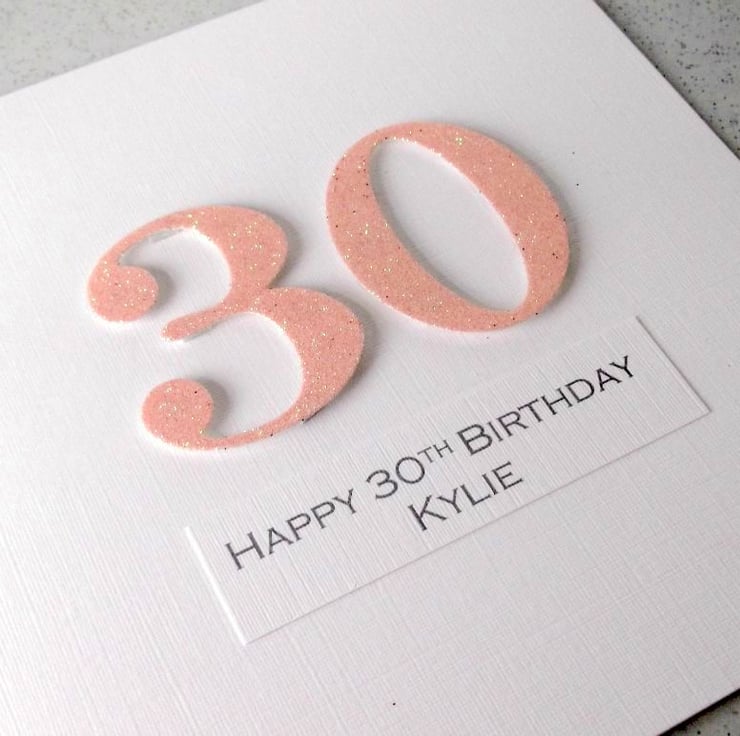 The printed message can be personalised to any message you require. The large sparkly numbers can be supplied in a range of colours The card shown uses rose pink glitter card. Please choose the colour you would like as you order.