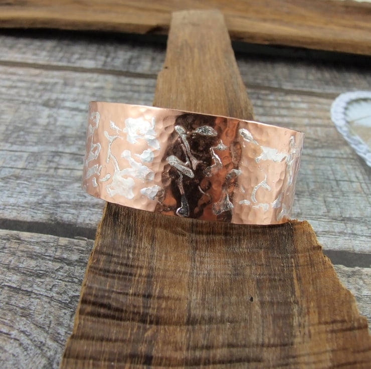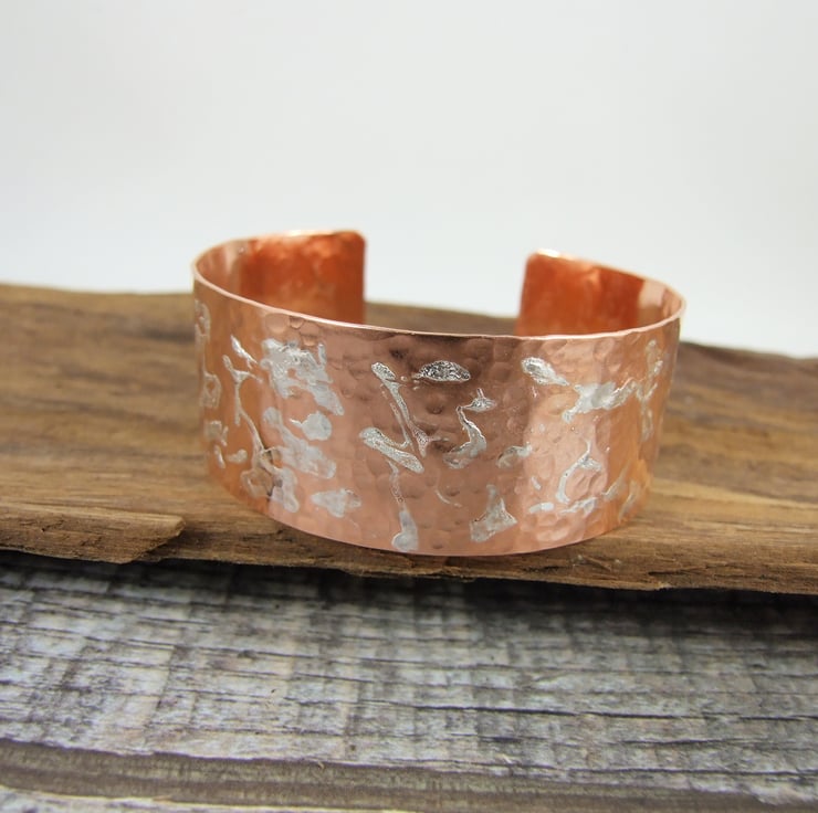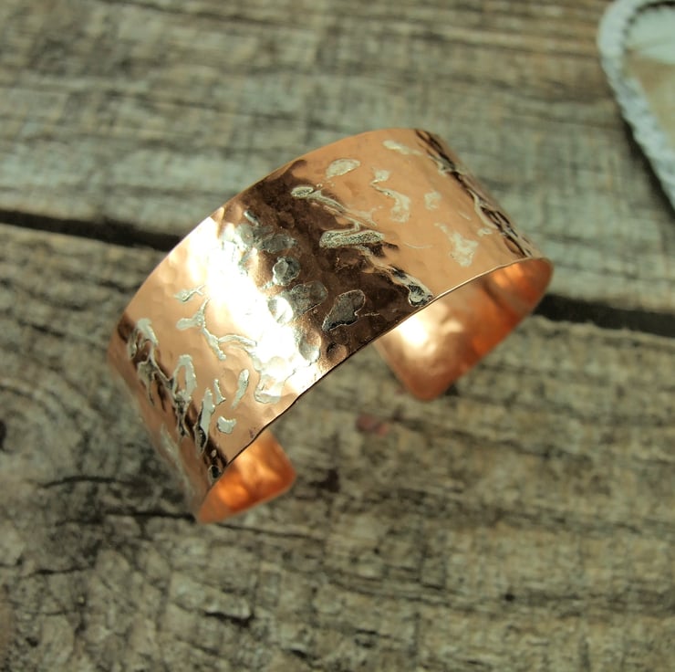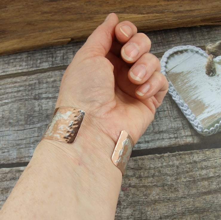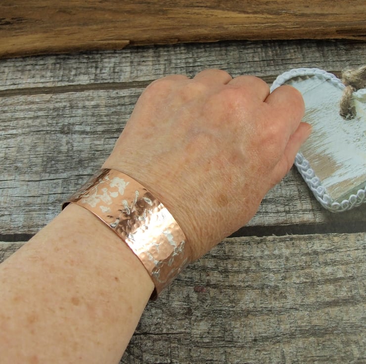 Copper Wide Hammered Cuff Bangle. Small to Medium fit to suit 6-7 inch wrist.
