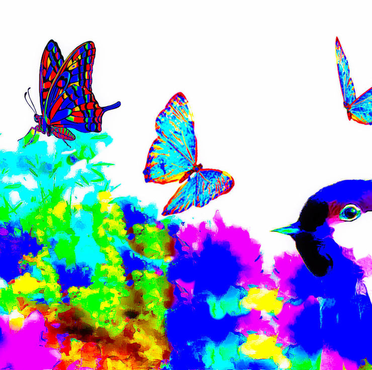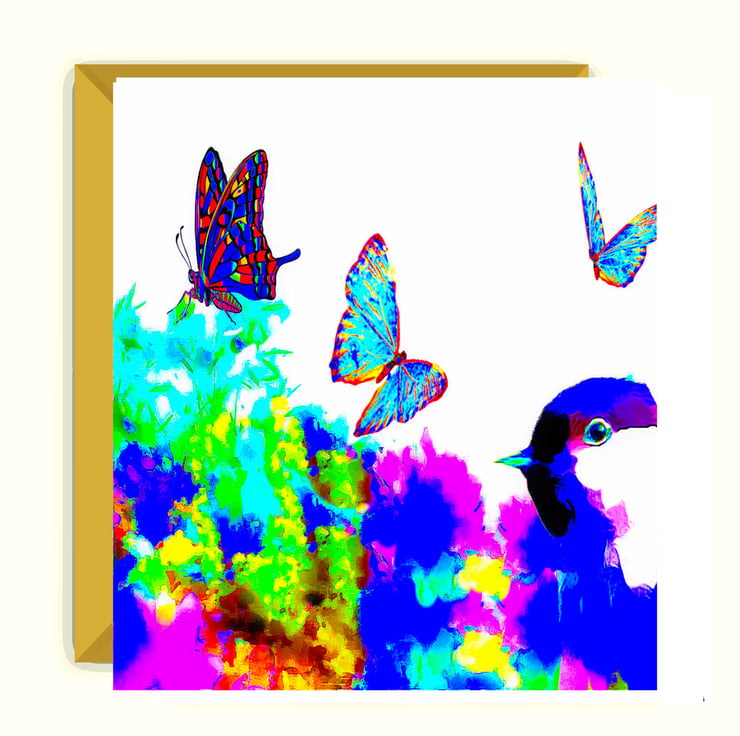 This is a surreal Greeting Card; a Butterfly and Bird Scene; dreamy. perfect for anyone special in your life - your mum, best friend. Could be a Birthday Card, or a Get Well Card, or a Thank You Card.